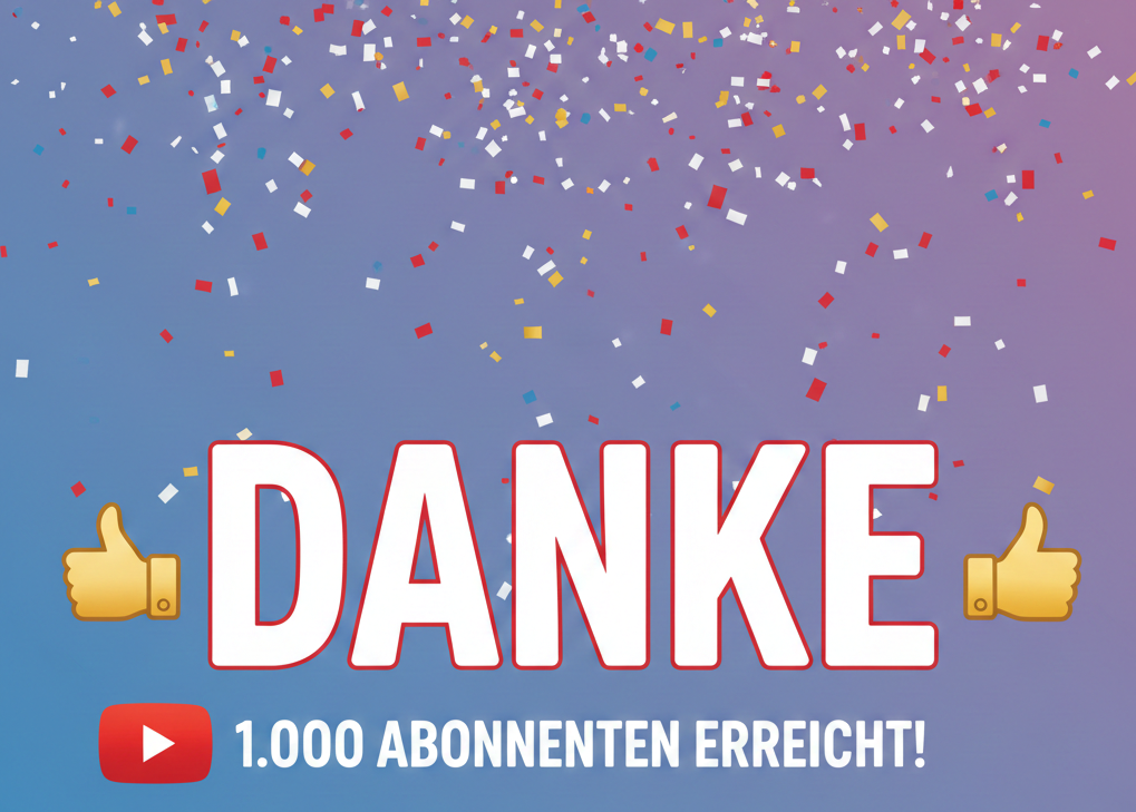 Nach einem tollen Start, meines noch sehr jungen YouTube Kanals, kann ich mich nun nach ca. 6 Wochen über die ersten 1.000 Abonnenten bedanken. Genau genommen waren es Ende November 1.037 Abonnenten. Damit hatte ich so schnell tatsächlich nicht gerechnet und das freut mich sehr.