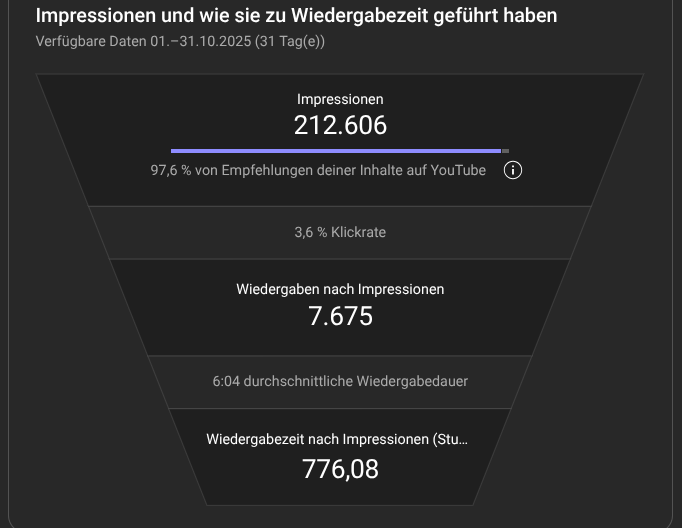 Da es vielleicht auch Andere interessiert, wie sich der YouTube Kanal entwickelt, habe ich mir für die Anfangsphase überlegt, regelmäßig von der Entwicklung zu berichten. Daher starte ich heute direkt einmal damit und gehe auf ein paar Entwicklungen sowie Statistiken im Oktober ein.
