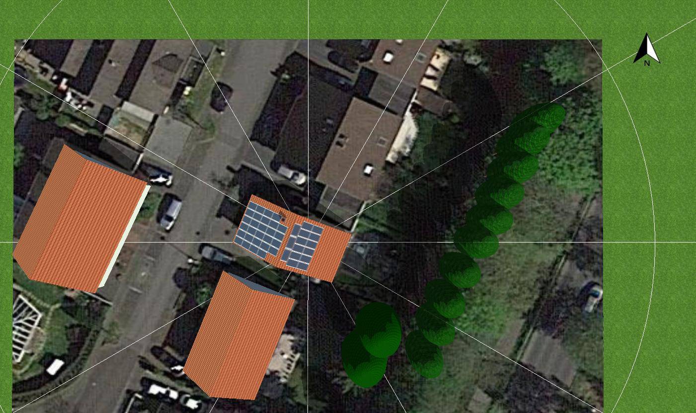 Ergebnis meiner Simulationen war dann, dass die Ost-Seite des Daches sich nicht wirklich für eine Vollbelegung eignet und das auf jeden Fall die West-Seite mit einbezogen werden sollte.