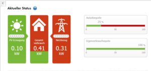 In der folgenden Darstellung ist wieder die Autarkie und der Selbstverbrauch im Monat April zu sehen.