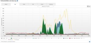 Die Auswertung der Statistiken für den August hat nicht so viel Spaß gemacht, da das Wetter im August doch sehr wechselhaft war. Insbesondere die zweite Monatshälfte hat in Bezug auf den PV-Ertrag nicht so viel gebracht, wie eigentlich zu erwarten war.