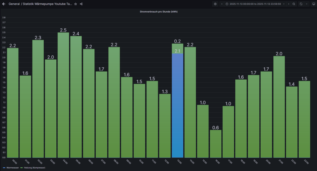 Im November hatten wir quasi zwei Temperaturbereiche. In den ersten beiden Wochen war es noch relativ mild aber in den letzten beiden Wochen wurde es dann deutlich kälter. Daher ist auch der Verbrauch der Wärmepumpe gegenüber dem Oktober deutlich gestiegen.